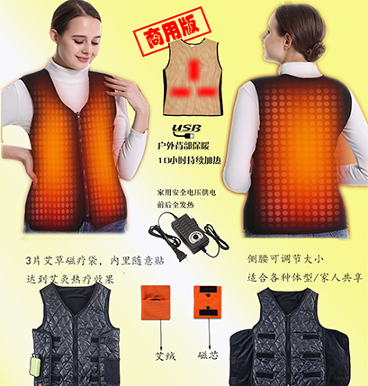 一款适合中老年人热敷理疗服:配合无烟艾灸、磁疗、远红外高温热敷、以及外出基础保暖功能。